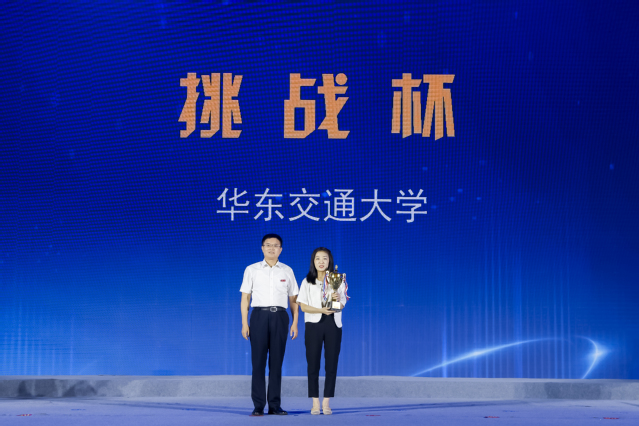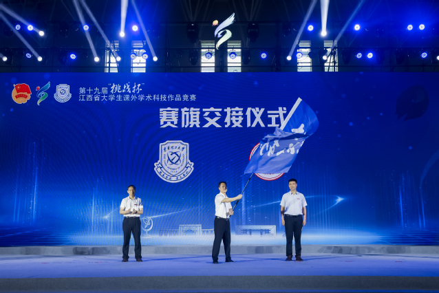 仪式现场,肖如恩与本届大赛承办单位代表李满根,下届大赛承办单位代表、江西应用科技学院党委副书记、纪委书记江星共同完成“挑战杯”赛旗交接仪式。主承办单位负责同志分别为获奖选手代表颁奖。