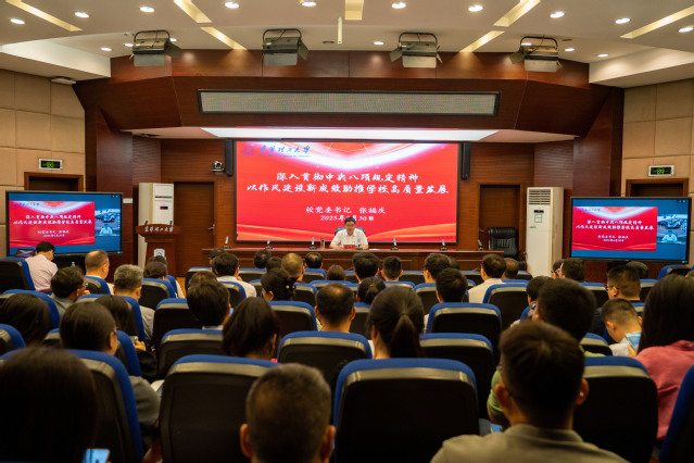 张福庆从深刻把握开展深入贯彻中央八项规定精神学习教育的重要意义、清醒认识当前党的作风建设面临的严峻形势、着力以作风建设新成效开创学校高质量发展新局面三个方面进行系统阐述。他指出,党的十八大以来,习近平总书记围绕加强党的作风建设发表了一系列重要论述,深刻回答了作风建设为什么抓、抓什么、怎么抓等问题,为新形势下加强和改进党的作风建设、深入贯彻中央八项规定精神学习教育,提供了根本遵循和行动指南。
