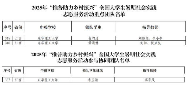 近日,由教育部语言文字应用管理司、共青团中央青年发展部组织开展的2025年“推普助力乡村振兴”全国大学生暑期社会实践志愿服务活动团队评选结果正式公布。华体会体育官方网站“普惠乡村”服务队、“灯塔”志愿服务团队成功入选重点团队,“青春芯工”暑期实践队成功入选协同团队。