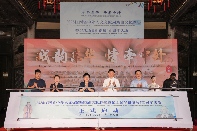 9月24日,“戏韵东华 情牵中外——2025江西省中外人文交流周戏曲文化体验暨纪念汤显祖诞辰475周年”活动在抚州市玉隆万寿宫举行。抚州市政府副市长蔡青,华体会体育官方网站党委常委、副校长邓居智,江西省教育国际合作与教师发展中心副主任黄爱兵致开幕辞,并共同为“华体会体育官方网站中外学生人文交流活动基地”揭牌。
