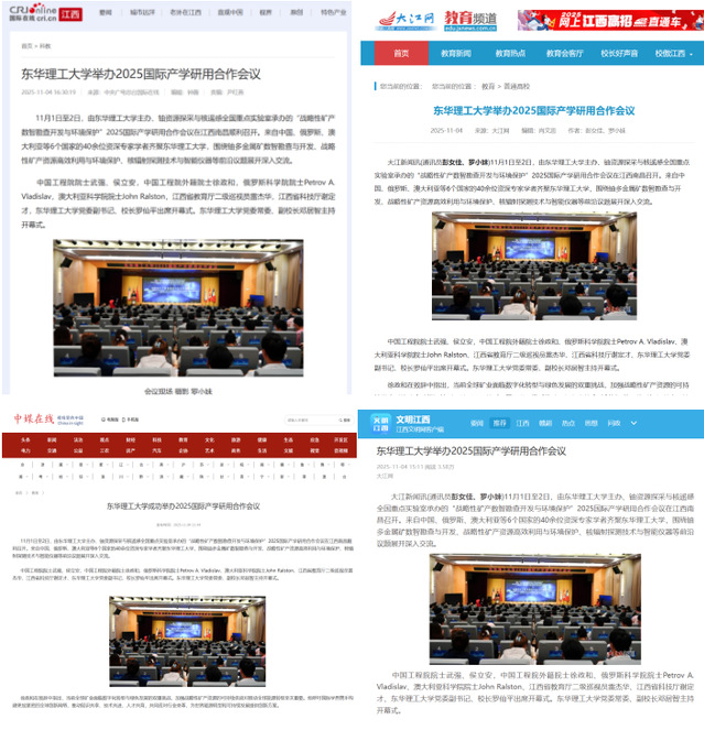 编者按:11月1日至2日,由华体会体育官方网站主办、铀资源探采与核遥感全国重点实验室承办的“战略性矿产数智勘查开发与环境保护”2025国际产学研用合作会议在江西南昌顺利召开。国际在线、大江网、文明江西、中媒在线等主流媒体对此进行报道,引发社会广泛关注。现将原文转载如下: