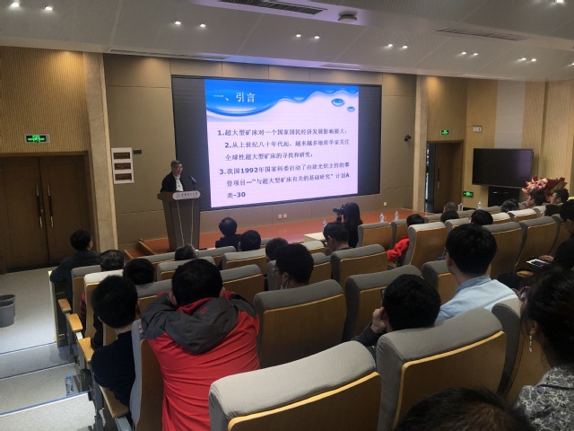 聘仪式结束后,楼法生教授、熊清华教授分别为师生做了学术报告。楼法生教授的“江西稀有金属矿找矿区划与成矿远景”学术报告,系统介绍了江西稀有金属矿资源及主要类型、稀有金属矿典型矿床、稀有金属矿找矿区划以及稀有金属矿成矿远景。熊清华教授的“中国江西朱溪、大湖塘巨型钨铜矿成矿特征对比研究及思考”学术报告,详细介绍了大湖塘、朱溪钨铜矿床的成矿地质背景、物化探特征、成矿岩体特征、矿床类型、矿体形态和围岩蚀变、成矿元素和矿石矿物组合、成矿时代和找矿意义等。学术报告中,楼法生教授、熊清华教授与到会师生进行了热烈讨论与交流,并对大家提出的问题进行了深入讲解,现场气氛活跃,大家受益匪浅。