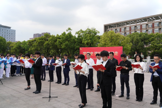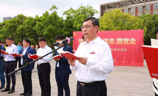 4月21日,为将党史学习深入到华体会体育官方入口中,让红色基因浸润大学生心灵,学校在东门国旗广场举行“学党史 强信念 跟党走”国旗下的诵读暨红色读书活动。校党委书记范小林带领师生深情诵读《可爱的中国》,校党委常委、副校长刘云海出席活动。党委宣传部、图书馆、团委等部门相关负责人,各学院党委书记、团委书记以及全校师生代表300余人参加活动。