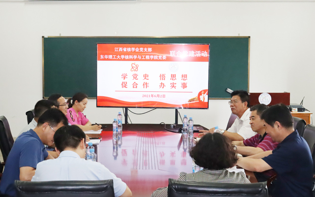 为深入学习贯彻习近平总书记在党史学习教育动员大会上的重要讲话精神,进一步推动党史学习教育走深走实,6月2日下午,我校核科学与工程学院党委与江西省核学会党支部联合开展“学党史,悟思想,促合作,办实事”党史学习教育主题活动。校党委常委、副校长刘云海在地学楼C503会议室会见了核工业江西省矿冶局副局长邵飞,江西省核学会理事长张志和、秘书长汪洋一行5人,核工学院党政负责人、教工党员参加了活动。