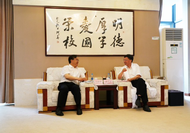 6月10日上午,青海民族大学校长马维胜一行来校交流访问。校长孙占学在南昌广兰校区行政楼311会客室会见客人并进行座谈,党委(校长)办公室、国际合作与交流处、科研与科技开发处、研究生院等部门负责人参加座谈。