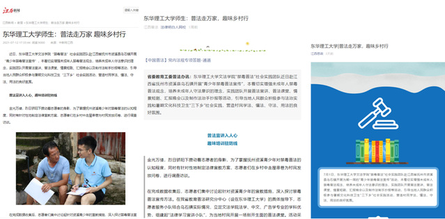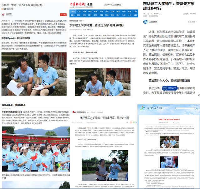 编者按:暑假期间,为切实增强未成年人禁毒普法观念,培养未成年人守法意识的理念,我校文法学院“禁毒普法”社会实践团队赴江西省抚州市资溪县乌石镇开展“青少年禁毒普法宣传”活动。学习强国、中国新闻网、新华社客户端、中国青年网、中国教育在线、江西教育、江西新闻、江西普法、江西思政等媒体对此进行报道,现将相关报道原文转载如下: