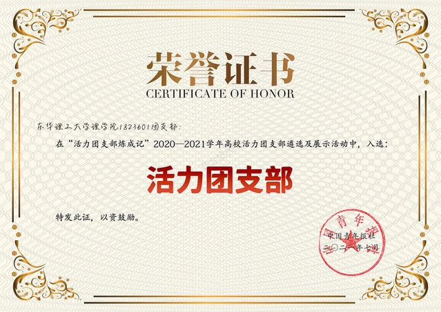 近三年来,1823601团支部积极进取,硕果累累。团支部获2019年江西省暑期“三下乡”社会实践优秀服务队、2020年江西省暑期“三下乡”社会实践优秀调研报告;获2020年江西省“红色走读”竞赛三等奖;支部成员在科技创新竞赛上获国际级荣誉20人次,国家级荣誉30余人次,省级荣誉30余人次,校级荣誉150余人次,2019、2020年连续两次获“华体会体育官方网站优秀班集体”等荣誉。