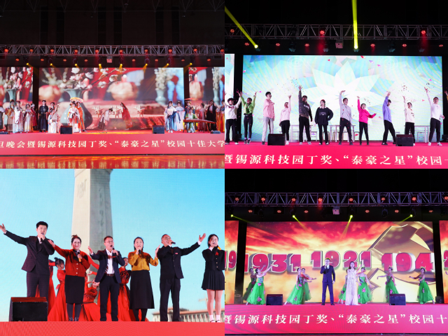 体育学院选送的全国啦啦操联赛金奖节目《Super Future Star》中,演员时而跳跃旋转,时而托举翻腾,动感十足的表演引来阵阵喝彩,将晚会气氛再一次推向**。汉服秀《礼仪之邦》的演员们身着汉服,轻扬霓裳,裙带飘扬,款款走来,充分展示了中华传统文化之美。全省微团课一等奖作品《青春的样子》首登晚会舞台,为现场3000余名师生讲述了一堂别样的思政课,向全校青年学子传递了崇德向善、奋发向上的价值追求。歌曲《向未来出发》,展现了青年师生朝气蓬勃的青春形象,表达了对祖国未来的美好祝愿。