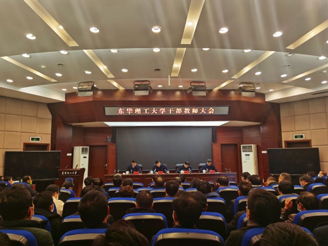 学校领导班子成员、正处级领导干部和正高职称人员参加会议。(图/陈婷 文/金建华)
