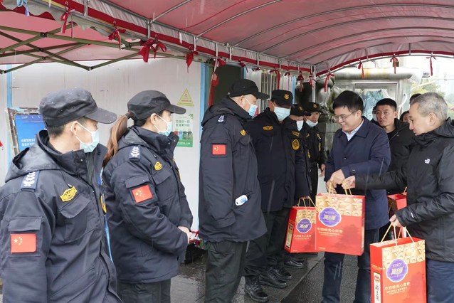 走访慰问中,校领导详细了解了学校总值班室、后勤、保卫等地值班值守情况,查看了公寓、餐厅、校医院等服务保障机构运转情况,重点检查了校园安保、校门管控、物业服务及水电暖供应等情况。张福庆对一线工作人员的敬业精神表示赞赏,对他们的辛勤付出表示感谢,感谢他们在一线平凡岗位中履职尽责,为平安校园、美丽家园建设提供了保障,为学校事业的有序开展作出了积极贡献。