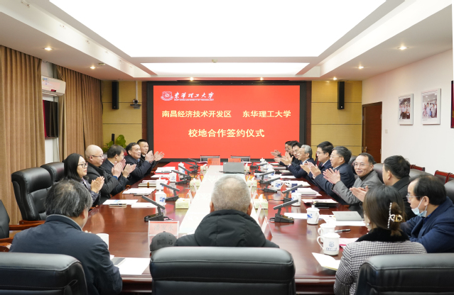 南昌经开区创新发展局、社发局,我校党委办公室(校长办公室)、教务处、科研与科技开发处、招生就业处、省部共建工作办公室(军民融合工作办公室)、基本建设管理处、核资源与环境国家重点实验室等部门负责同志参加签约仪式。(图/陈婷 文/王平)