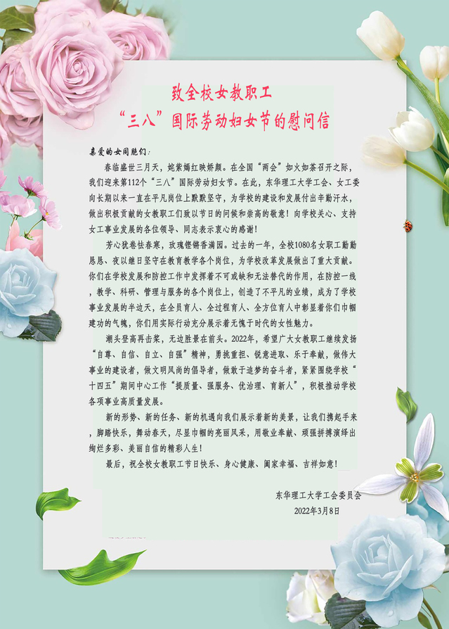 致全校女教职工“三八”国际劳动妇女节的慰问信