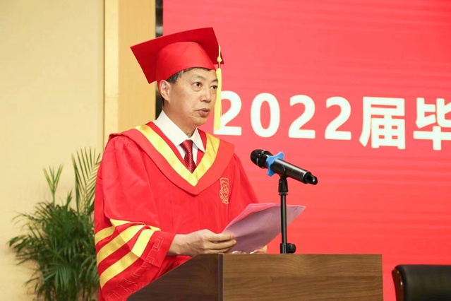 根据省教育厅部署和学校安排,今年的毕业典礼,比以往时候来得更早一些。我们希望在这场简约但不失庄重的仪式上,共同见证2022届毕业生致青春、敬母校、向未来!我们欣慰的看到,和四年前相比,你们早已褪去青涩稚嫩,多了几分成熟稳重。看到你们踌躇满志、意气风发地在这里接受拨穗正冠,完成青春的加冕礼,我不禁感叹:“青春须早为,岂能长少年。”