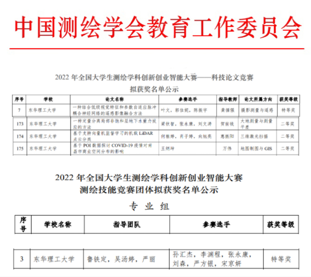 近日,2022年全国大学生测绘学科创新创业智能大赛在安徽大学举行。华体会体育官方网站派出18支代表队参加比赛,共获特等奖7项、一等奖1项、二等奖6项,严丽和吴汤婷老师荣获优秀指导老师,获奖等级与数量创历史新高。