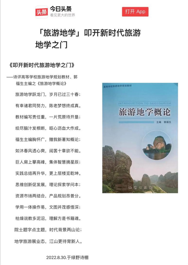 (《叩开新时代旅游地学之门》--今日头条)