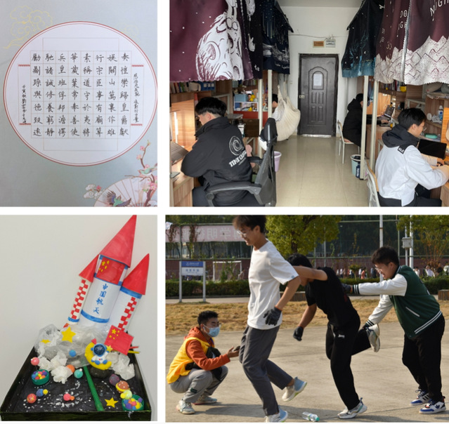 活动由文创作品征集、文明特色寝室评选和寝室素质拓展比赛三部分组成。在文创作品征集活动中,共收到包括书法、手工、宣传片等多种形式的作品300余件,经过主题初选、专家评选,最终评出54份优秀作品;文明特色寝室评选活动共吸引全校100多个寝室积极参与,经专家评审,共评选出39个文明特色寝室;寝室素质拓展比赛由“同舟共济”“中国梦我的梦”“稳扎稳打走好中国路”“文韬武略”等七个趣味项目组成,吸引了800余名学生参与,共评出一等奖5个、二等奖10个、三等奖15个。