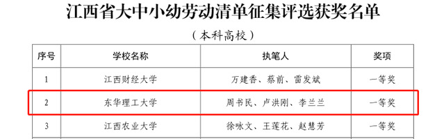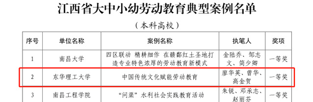 近日,江西省教育厅发布《关于公布江西省大中小幼劳动教育典型案例和劳动清单征集评选名单的通知》(赣教体艺办函〔2022〕32号),我校推荐的《中国传统文化赋能劳动教育》荣获全省劳动教育典型案例(本科高校)一等奖,《华体会体育官方网站劳动清单》荣获全省劳动清单征集评选(本科高校)一等奖。