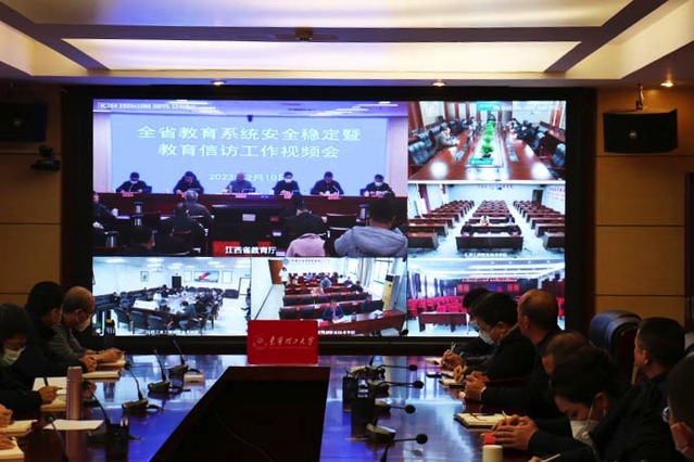 2月10日,2023年全省教育系统安全稳定暨教育**工作视频会议在南昌召开,会议就2023年全省教育系统安全稳定暨教育**工作,以及新学期开学和全国“两会”期间全省学校安全稳定工作作了部署。校党委常委、副校长刘云海,学校相关部门、学院负责人在我校昌抚两校区分会场参加会议。