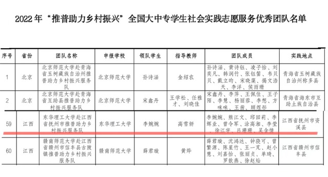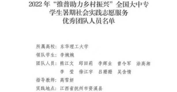 近日,教育部语言文字应用管理司、共青团中央青年发展部共同主办的2022年“推普助力乡村振兴”全国大中专学生暑期社会实践志愿服务活动评优结果揭晓,我校“赴江西省抚州市推普助力乡村振兴服务队”获“优秀团队”称号并获教育部语言文字应用司和共青团中央青年部来信表扬。