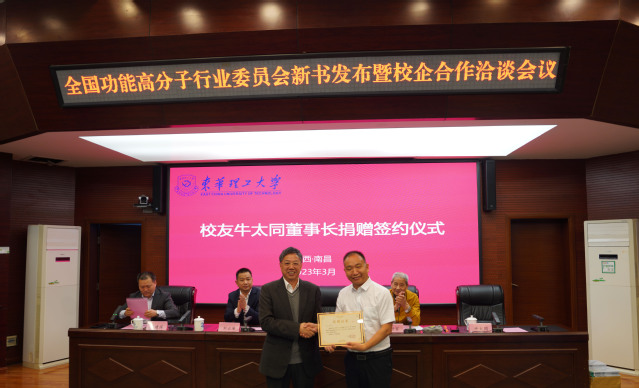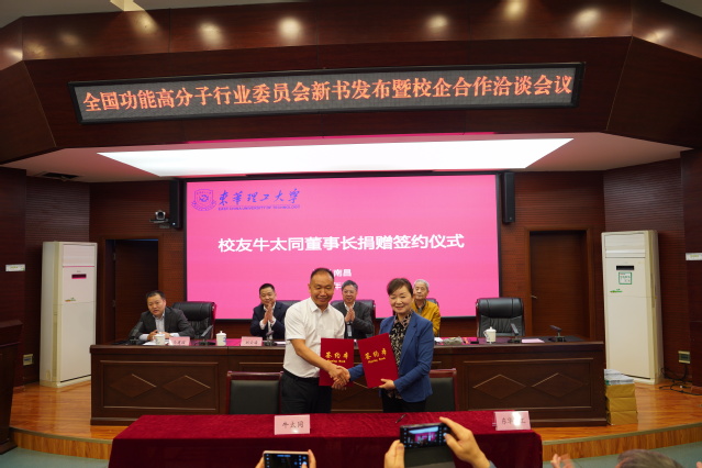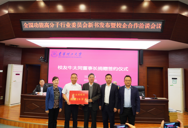牛太同是华体会体育官方网站1986届工业分析专业校友。此次牛太同向我校基金会捐赠20万元,用于“教室冠名认捐”等项目,并代表全国功能高分子行业委员会向学校捐赠100册图书,助力学校及化学生物与材料科学学院的发展。据悉,本次捐赠是学校教育发展基金会推出“教室冠名认捐项目”后的首笔认捐。