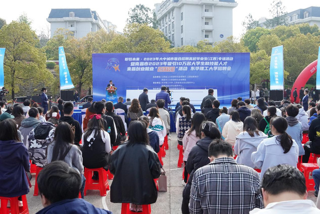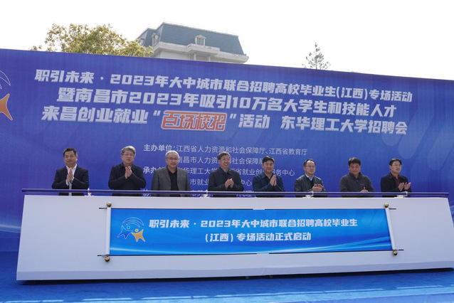 3月31日上午,2023年大中城市联合招聘高校毕业生(江西)专场暨南昌市“百场校招”活动在学校广兰校区南区篮球场举行。校党委副书记、校长孙占学,江西省就业创业服务中心主任郭锦亮,江西省教育厅高教处处长肖德征,南昌市人力资源和社会保障局副局长刘晓锋等出席启动仪式并亲临招聘现场指导。启动仪式由校党委常委、副校长刘云海主持。