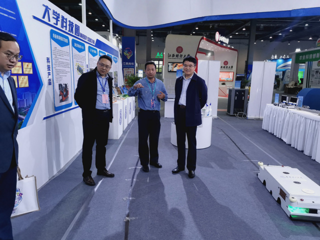 展览期间,省委教育工委委员、省教育厅总督学曹伴好一行到华体会体育官方网站展厅参观。曹伴好听取邱建丁详细介绍我校国家重点实验室建设、高水平科研团队建设、标志性科技成果及成果转化等情况后,对我校取得的科技成果表示了充分肯定。随后,邱建丁接受了江西日报等媒体采访,介绍了学校在中子加速器、电子成像系统以及激光导航自动叉车等领域取得的创新成果。