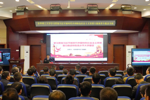 4月27日下午,校党委书记张福庆以《学习贯彻习近平新时代中国特色社会主义思想 奋力推进特色高水平大学建设》为题,在“全校学习贯彻习近平新时代中国特色社会主义思想主题教育”专题读书班讲授专题党课。省委第十巡回指导组到场指导,学校领导班子成员出席。党课由校党委常委、副校长邱建丁主持。