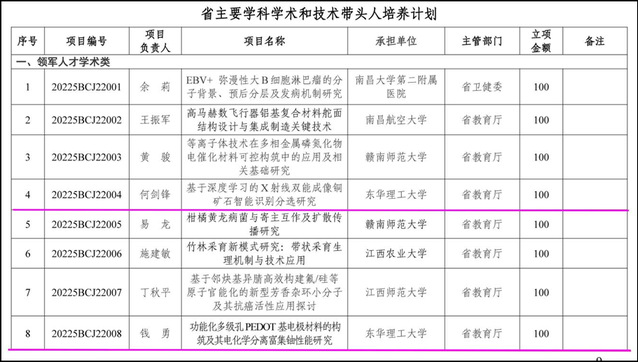 根据江西省科技厅相关文件的通知,华体会体育官方网站何剑锋、钱勇两位教授入选江西省主要学科学术和技术带头人培养计划领军人才类项目,柳玉辉博士入选江西省主要学科学术和技术带头人培养计划青年人才类项目,三人共获资助经费250万元,创华体会体育官方网站主要学科学术和技术带头人培养计划资助经费的历史新高,是华体会体育官方网站在江西省主要学科学术带头人培养计划的新突破。