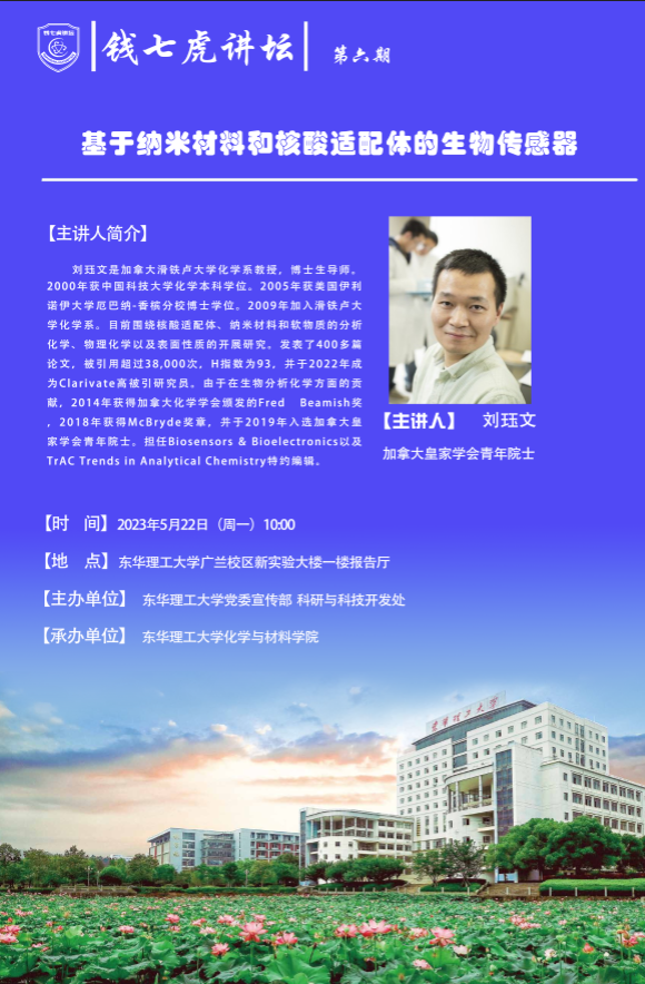 应化学与材料学院邀请,加拿大滑铁卢大学化学系教授,博士生导师刘珏文来到华体会体育官方网站,以“基于纳米材料和核酸适配体的生物传感器”为主题开展讲座。欢迎全校师生届时前往聆听。