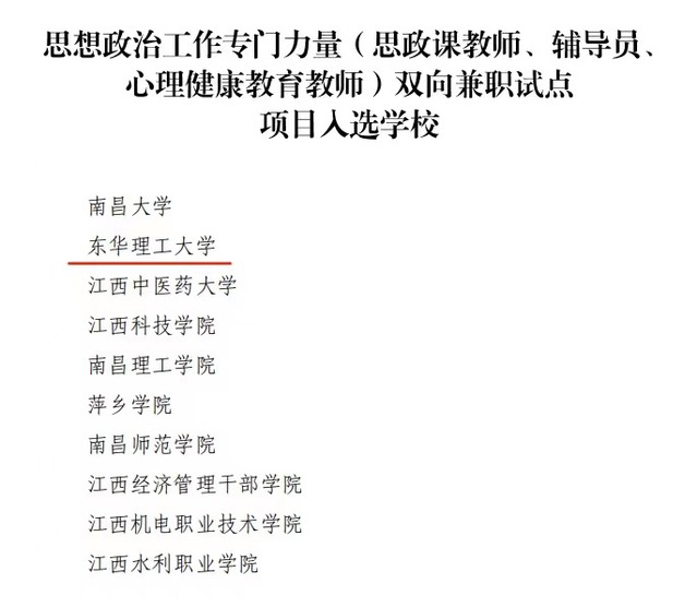 据悉,本次活动由江西省教育厅主办,共评选出江西省高校思想政治工作精品项目重点立项15个,一般立项25个;评选出思想政治工作专门力量(思政课教师、辅导员、心理健康教育教师)双向兼职试点项目入选学校10个。