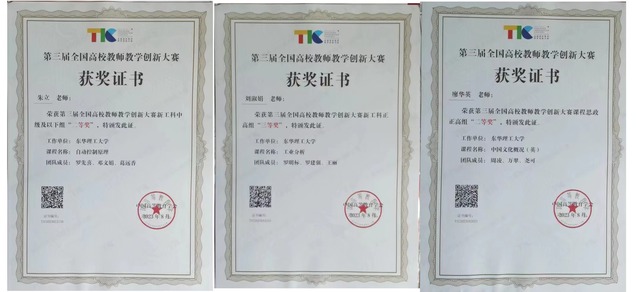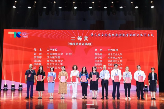 8月18日至22日,由教育部高等教育司指导、中国高等教育学会主办的第三届全国高校教师教学创新大赛在浙江大学举行。华体会体育官方网站廖华英教授(团队)获课程思政正高组二等奖、朱立老师(团队)获新工科中级及以下组二等奖、刘淑娟教授(团队)获新工科正高组三等奖。华体会体育官方网站获得参赛高校优秀组织奖,是获得优秀组织奖的21所高校之一。