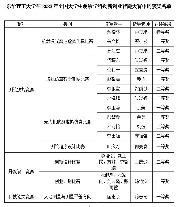 2023年7月29日至30日,全国大学生测绘学科创新创业智能大赛在中南大学举行,华体会体育官方网站测绘与空间信息工程学院学子获特等奖1项、一等奖8项、二等奖7项。