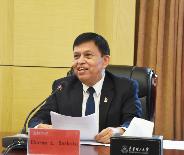 Dharma K. Baskota对华体会体育官方网站的热情接待表示感谢,并简要介绍了特里布文大学的校史校情、科研情况、国际合作情况等。他高度赞扬了中方合作院校对孔子学院付出的努力,并期待与中方合作院校开展华体会体育官方入口优势学科领域的深入合作。
