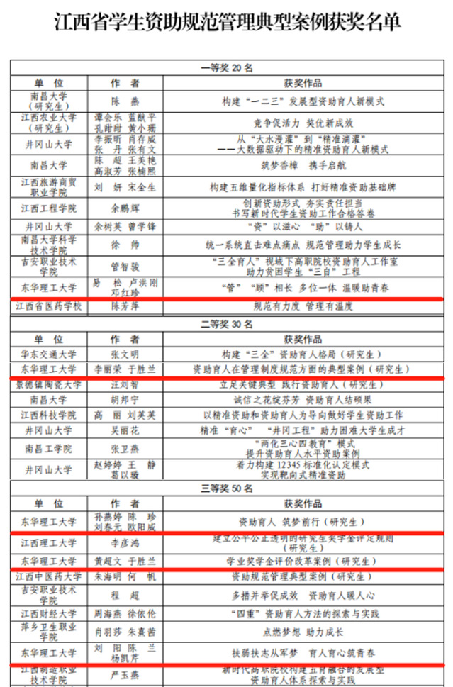 本次活动由江西省教育厅主办,旨在推广各地各校学生资助规范管理典型案例,展现受助学生成长成才精神风貌,共评选出典型案例100篇,一等奖20篇,二等奖 30篇,三等奖50篇。