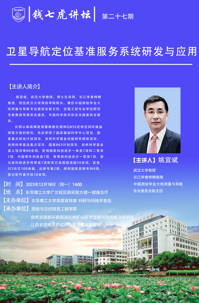 应测绘与空间信息工程学院邀请,长江学者特聘教授姚宜斌来到“华体会体育官方网站”,以“卫星导航定位基准服务系统研发与应用”为主题开展讲座。欢迎全校师生届时前往聆听。