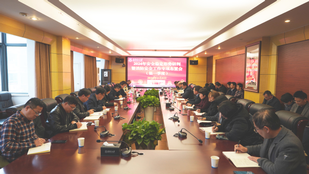 会上,校保卫处负责人对消防安全隐患排查问题的整治落实、加强师生火灾自救与防溺水教育、加强校园交通管理、启动毕业生征兵宣传、开展师生心理健康和反诈宣传教育等工作进行了布置安排。(文/顾屾 图/刘宇翔)