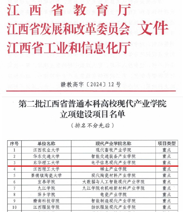 近日,江西省教育厅、江西省发展和改革委员会、江西省工业和信息化厅联合下发《关于公布第二批江西省普通本科高校现代产业学院立项建设项目名单的通知》,华体会体育官方网站申报的“电子信息现代产业学院”成功获批江西省现代产业学院立项建设重点项目。
