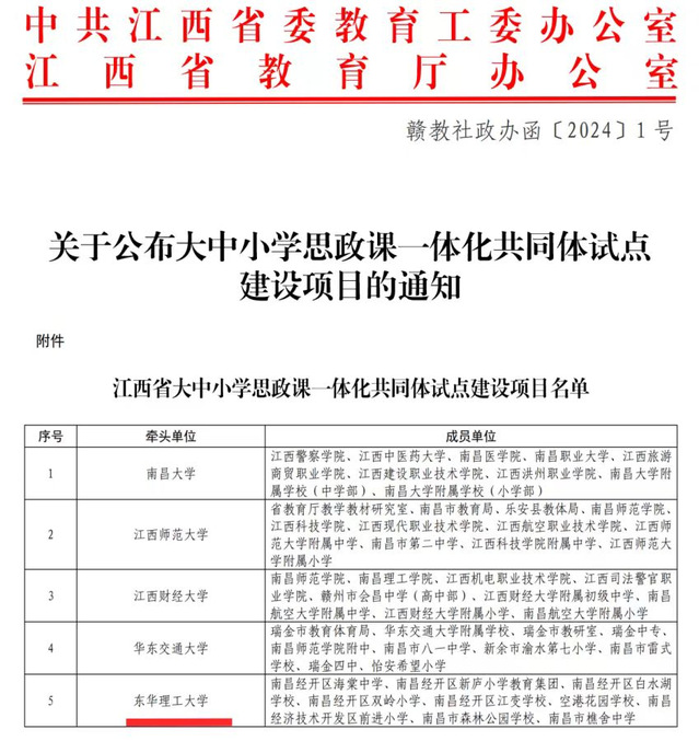 日前,中共江西省委教育工委、江西省教育厅正式公布了全省大中小学思政课一体化共同体试点建设项目评选结果,全省高校“一课多师”示范团队、“双师同堂”示范课堂、“师生同台”示范课评选结果,全省“大思政课”建设综合改革试验区改革项目评选结果,华体会体育官方网站获多项成果,标志着华体会体育官方网站思想政治理论课建设取得了显著成效。