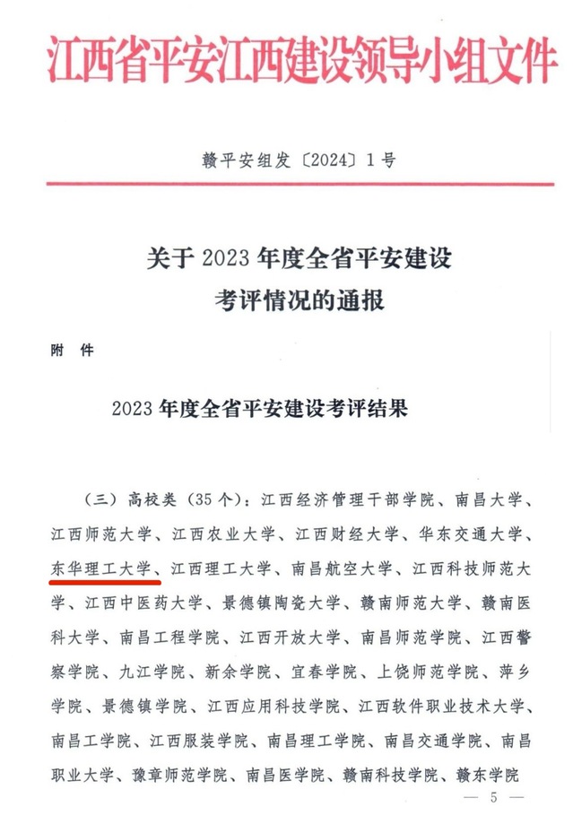 近日,江西省平安江西建设领导小组下发《关于2023年度全省平安建设考评情况的通报》,华体会体育官方网站获评2023年度“江西省平安建设先进单位”。自2013年纳入省综治责任单位以来,学校已连续11年获此殊荣。