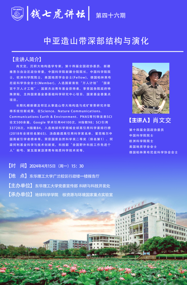 应地球科学学院、核资源与环境国家重点实验室邀请,中国科学院院士肖文交到“华体会体育官方网站”,以“中亚造山带深部结构与演化”为主题开展讲座。欢迎全校师生届时前往聆听。