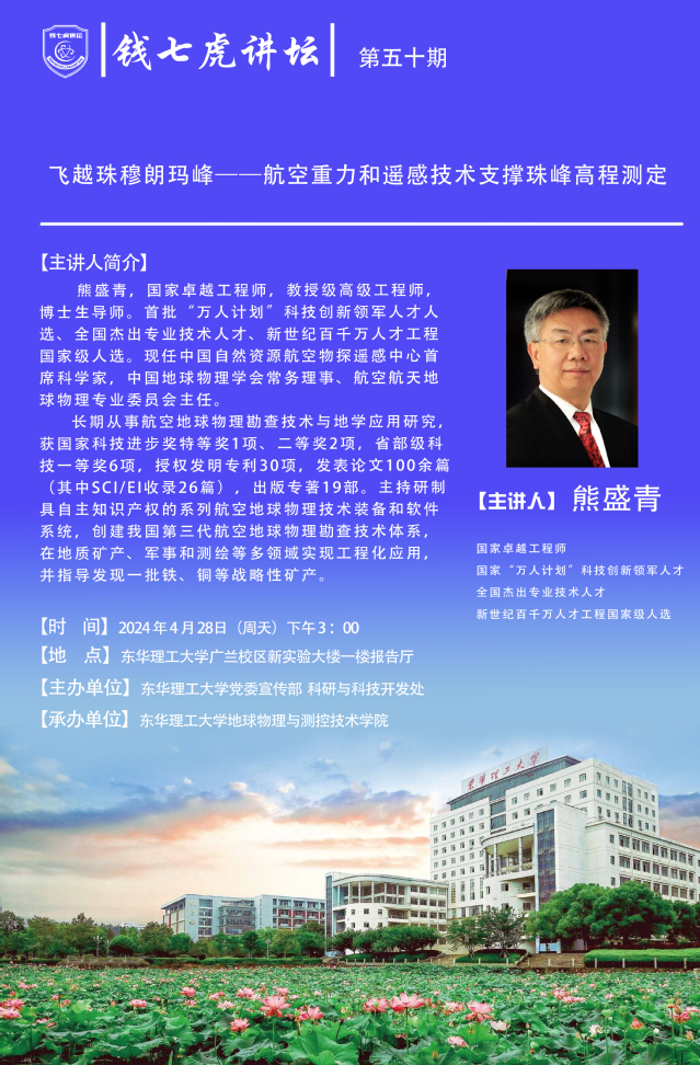 应地球物理与测控技术学院邀请,国家卓越工程师、国家级人才熊盛青到“华体会体育官方网站”,以“飞越珠穆朗玛峰——航空重力和遥感技术支撑珠峰高程测定”为主题开展讲座。欢迎全校师生届时前往聆听。