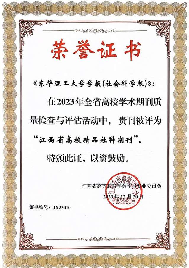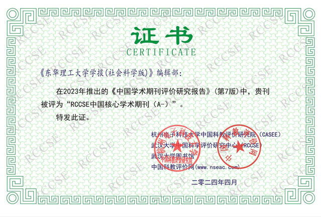 近日,由杭州电子科技大学中国科教评价研究院、武汉大学中国科学评价研究中心、武汉大学图书馆、中国科教评价网等单位联合研制的《中国学术期刊评价研究报告——RCCSE权威、核心期刊排行榜与指南》(第7版)正式发布。《华体会体育官方网站学报(社会科学版)》入选“RCCSE中国核心学术期刊(A-)”。这是继《华体会体育官方网站学报(自然科学版)》成功入编2023版《中文核心期刊要目总览》后,业界对学校办刊质量和学术影响力的又一充分肯定。
