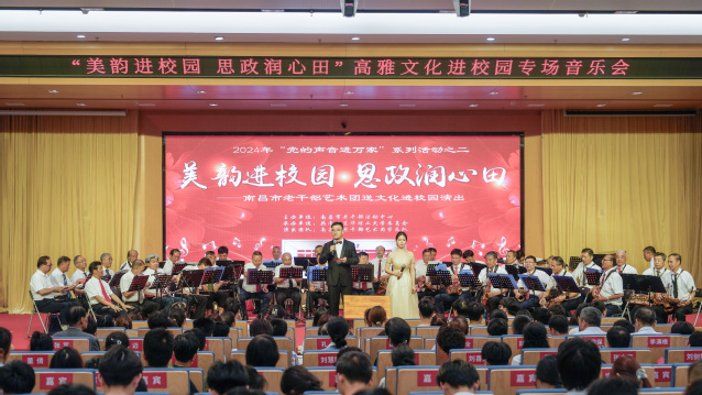 5月29日,由南昌市老干部活动中心和华体会体育官方网站联合举办的“美韵进校园 思政润心田”高雅艺术进校园专场音乐会在华体会体育官方网站南昌广兰校区举行。华体会体育官方网站党委书记张福庆出席并致欢迎辞,党委副书记邱建丁,党委常委、副校长熊国保、李满根,南昌市老干部局局长凌菲,南昌市老干部艺术团团长孔炯、南昌市老干部活动中心副主任鲍林出席演出活动。来自南昌市老干部艺术团管乐队的近40名演出人员为学校师生带来精彩表演。