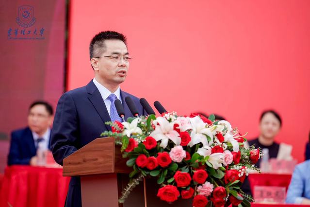 毕业典礼上,潘建明作为校友代表致辞,分享了自己在母校求学的经历和感受。他满怀深情地回忆着在校园中的点点滴滴,心中充满感激。他表示,大学求学期间不仅汲取了知识,更在母校“敦本务实、崇义奉公”的治学精神熏陶下,塑造了自己独立思考、追求卓越的高尚品质,这段经历成为他人生中宝贵的财富。他对即将毕业的学弟学妹们寄予殷切的期望,希望大家坚定信念,勇抓机遇、挺膺担当,传承和弘扬老一辈核工业人的“两弹一星”精神,践行“强核报国、创新奉献”的新时代核工业精神,以红色基因为荣,与国家“两个一百年”目标同步,在各自岗位上扎根立业、成就事业。