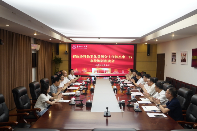7月2日,省政协常委、教科卫体委员会主任郭杰忠一行到华体会体育官方网站调研科研平台建设情况。双方在行政办公楼401会议室召开座谈会。华体会体育官方网站党委书记张福庆出席并致辞。省政协委员、教科卫体委员会专职副主任郑仙桃,华体会体育官方网站学术副校长王庆飞、校党委常委张立亭出席座谈会。华体会体育官方网站党委常委、副校长杨波主持会议。