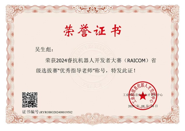 近日,由工业和信息化部人才交流中心主办的“2024年睿抗机器人开发者大赛(RAICOM)全国总决赛”在杭州落下帷幕。华体会体育官方网站机械与电子工程学院团队在CAIR工程竞技赛道中荣获全国一等奖1项、全国二等奖3项,吴生彪获评“优秀指导老师”。