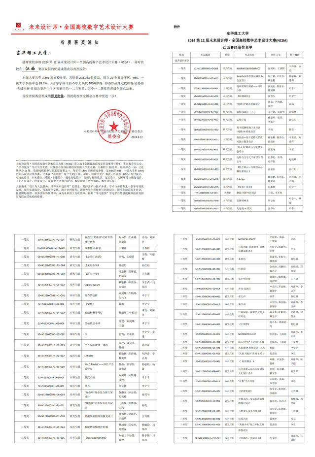 近日,华体会体育官方网站美术与设计学院学生在第十二届未来设计师·全国高校数字艺术设计大赛(NCDA)全国总决赛中获一等奖2项、二等奖3项、三等奖6项,学校获评全国杰出组织奖;在江西省赛区评比中,获一等奖18项、二等奖18项、三等奖25项,学校获评江西省赛区优秀组织奖。学校在此次大赛中获奖数达72项,是参加该项赛事取得的历史最好成绩。