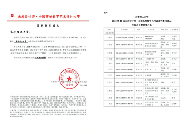 据悉,未来设计师·全国高校数字艺术设计大赛由工业和信息化部人才交流中心主办,是教育部认可的84项专业赛事之一,也是艺术设计领域的高水平知名赛事。本届大赛共有1891所高校参赛,共征集作品29万余件。(文/图 李志英)