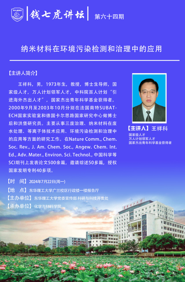 应化学与材料学院邀请,国家级高层次人才王祥科到“华体会体育官方网站”,以“纳米材料在环境污染检测和治理中的应用”为主题开展讲座。欢迎全校师生届时前往聆听。