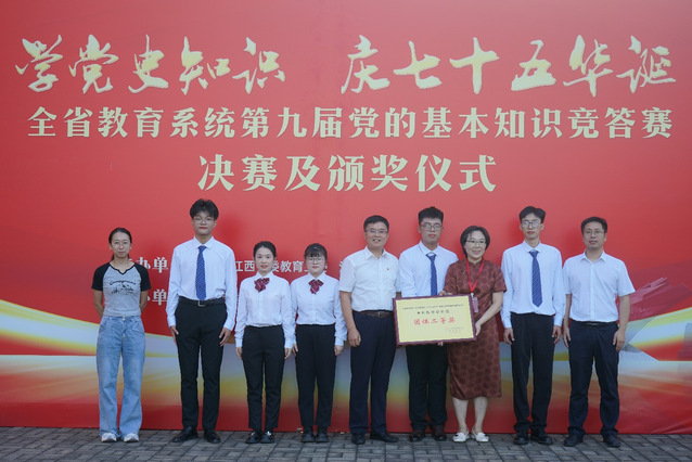 9月29日,江西省教育系统“学党史知识,庆七十五华诞”暨第九届党的基本知识竞答赛在江西科技师范大学举行,华体会体育官方网站党委书记张福庆到现场观摩。经过激烈角逐,华体会体育官方网站学生蒋林糗、宗寅、赖映洲、王婕、彭小雨组成的代表队(指导教师:周成莉)获本科院校学生组团体二等奖,是学校参加该赛事以来取得的最好成绩。